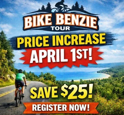 Benzie Sunrise Rotary and Crystal Mountain are partnering to bring you a bicycle tour of Benzie County, Michigan on May 30, 2026
